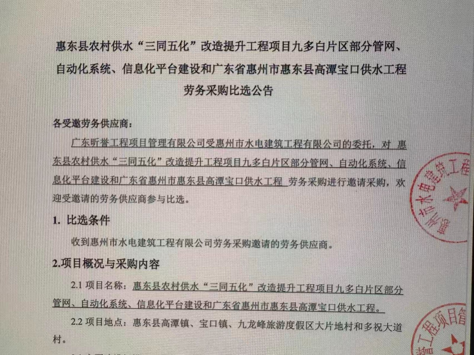廣東省惠州市中心城區防洪排澇綜合治理工程河涌治理項目-洛塘渠河道清障及補水泵站提升工程勞務采購(第二次)中選候選人公示……